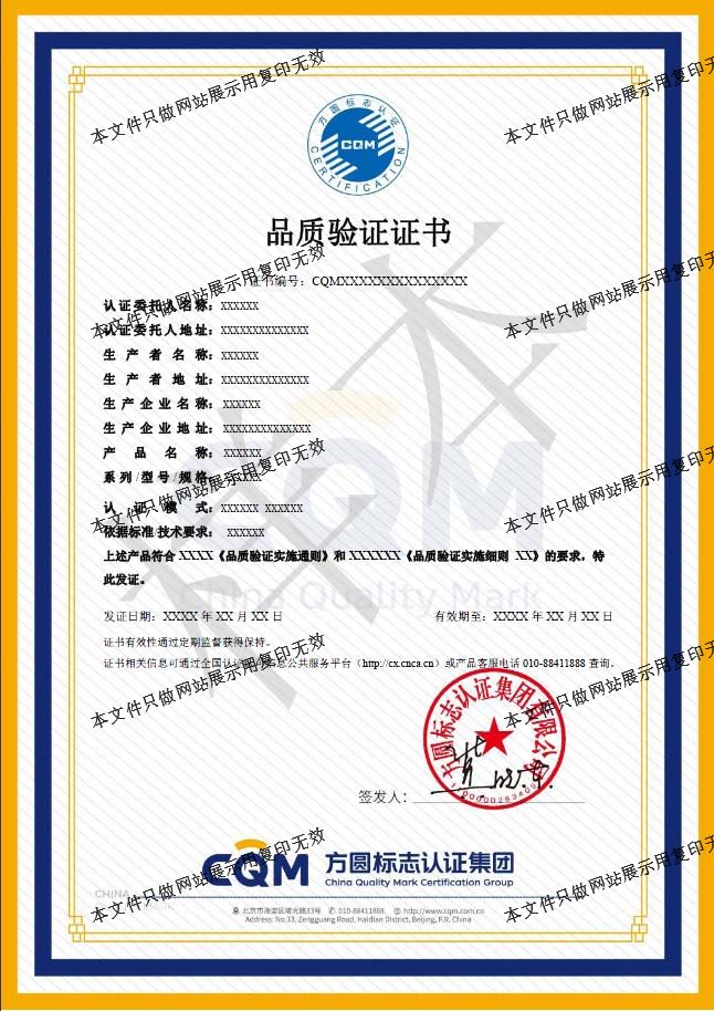 為加強對方圓自愿性產(chǎn)品認證標志的管理,確保產(chǎn)品認證標志的正確使用,維護產(chǎn)品認證標志的權(quán)威性和CQM的信譽,方圓標志認證集團依據(jù)國家認證認可的相關(guān)要求制定了產(chǎn)品認證標志使用規(guī)范。標志基本樣式: