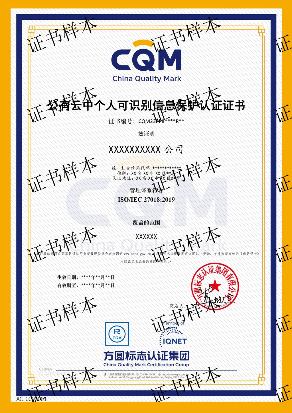 認(rèn)證依據(jù)為 ISO/IEC 27018,適用于公共云服務(wù)提供商、通過云計算作為個人識別信息(PII)處理者提供信息處理服務(wù)的組織等